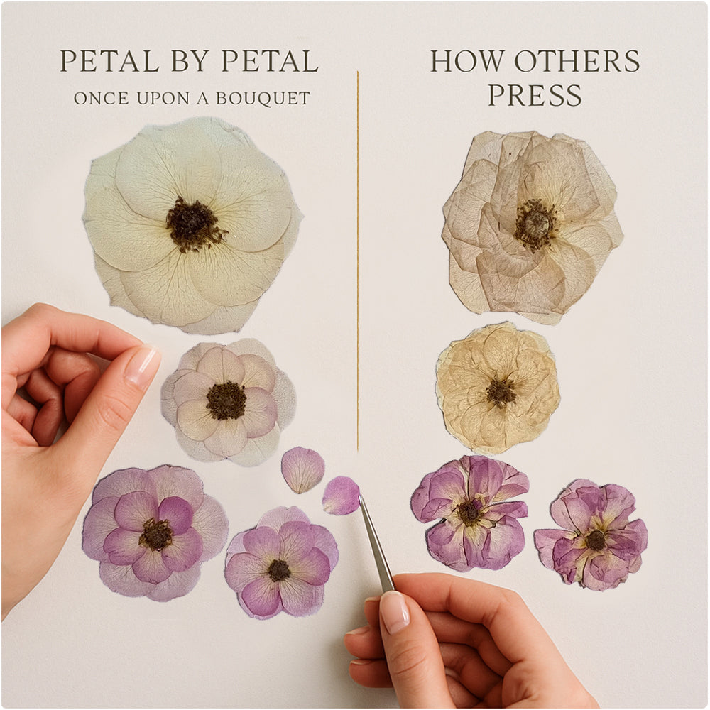 While others may flatten entire blooms in haste, we believe in honoring every petal—because true floral preservation is not about speed, but about soul, detail, and perfection.